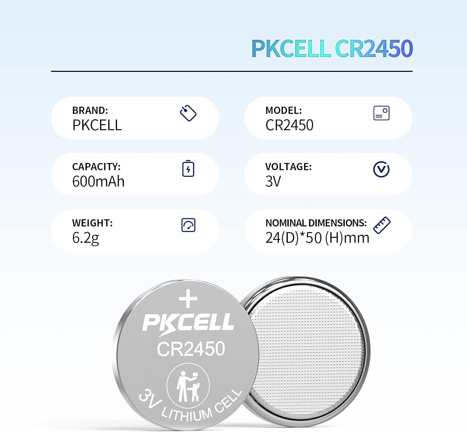 PKCELL Lithium Batteries 3V CR2450