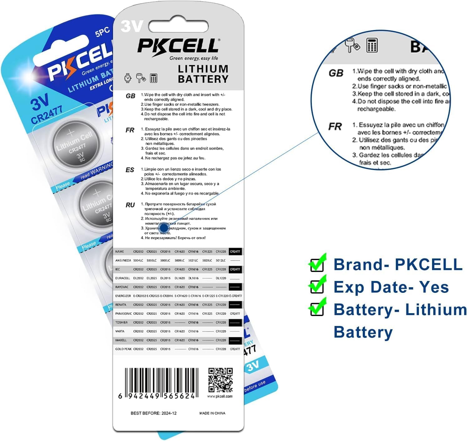PKCELL Lithium Batteries 3V CR2477